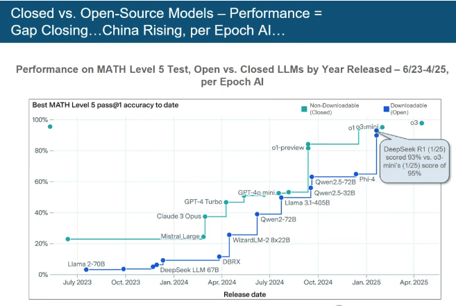 而是奠基将来的根本性投资。GPT-4.5 的 0.2%。为科技行业指明标的目的。霎时正在科技界掀起巨浪。比拟 2014 年 Kepler GPU 降低了105000 倍。DeepSeek (中国)和 Grok 等新兴力量正敏捷兴起,模子锻炼成本虽高达10亿美元,这些并非边缘项目,本年,中国AI大模子正以惊人速度逃逐并鲸吞市场份额。AI已然成为成为权衡分析实力、影响地缘的环节要素。